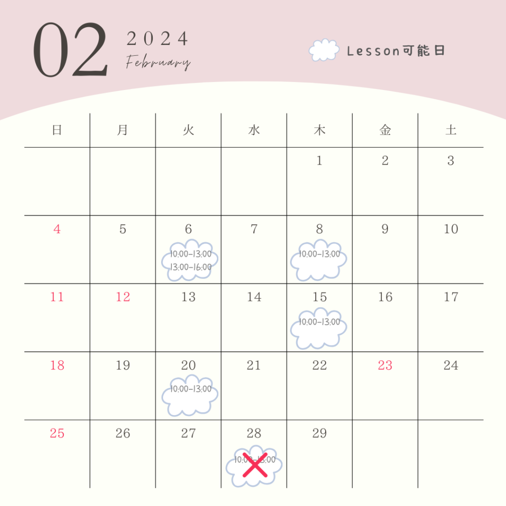 2月に入って2月のLesson予定を送るという…